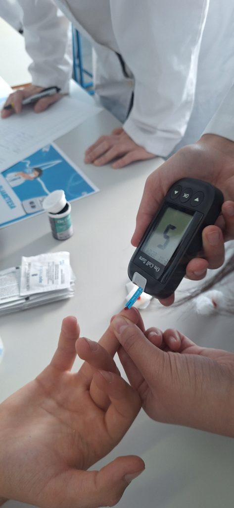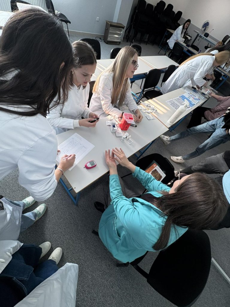Također, organizovane su i praktične aktivnosti koje su proveli učenici III6 odjeljenja prilikom čega su proveli mjerenje nivoa glukoze u krvi i mjerenje krvnog pritiska, kako bi učenici i osoblje škole imali priliku provjeriti svoje zdravstvene parametre i dobiti savjete o očuvanju zdravlja.