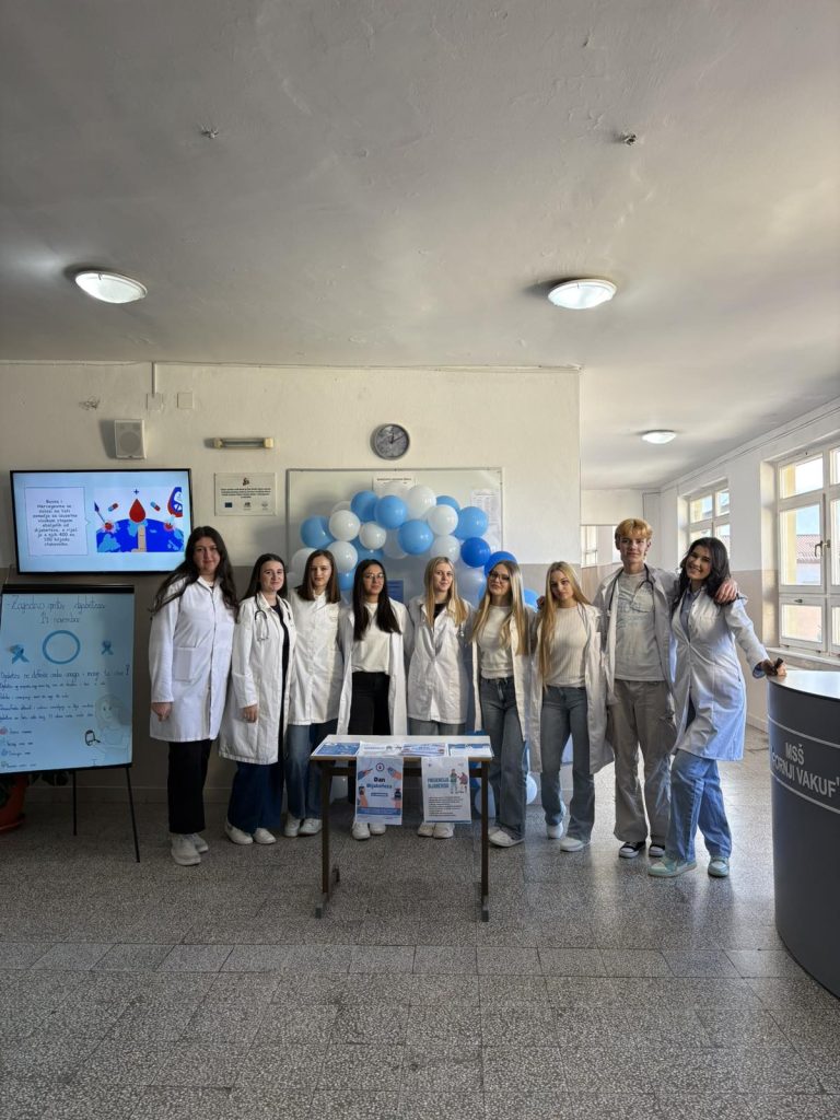 U petak, 14.11.2025. godine, učenici naše škole su obilježili Svjetski dan dijabetesa kroz niz edukativnih i preventivnih aktivnosti koje imaju za cilj podizanje svijesti o dijabetesu, njegovim simptomima, prevenciji i važnosti brige o zdravlju.